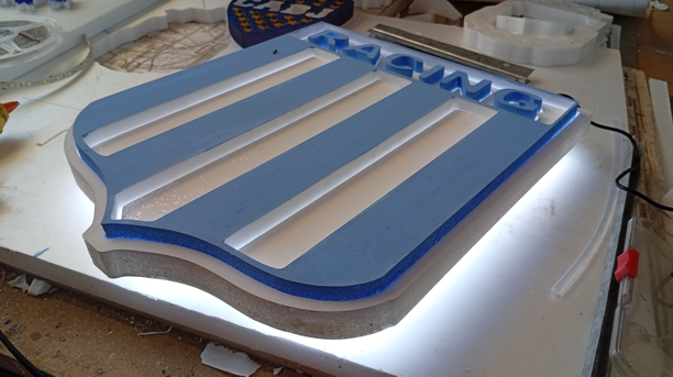 Escudo de Boca Tamaño Grande 60 Cms altura , en relieve con tira de led azul 12 v/220v