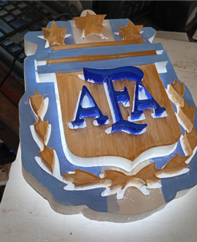 Escudo de 60 cms alto en polyfan en 2 niveles , con led 12v/fuente switching 110/220v